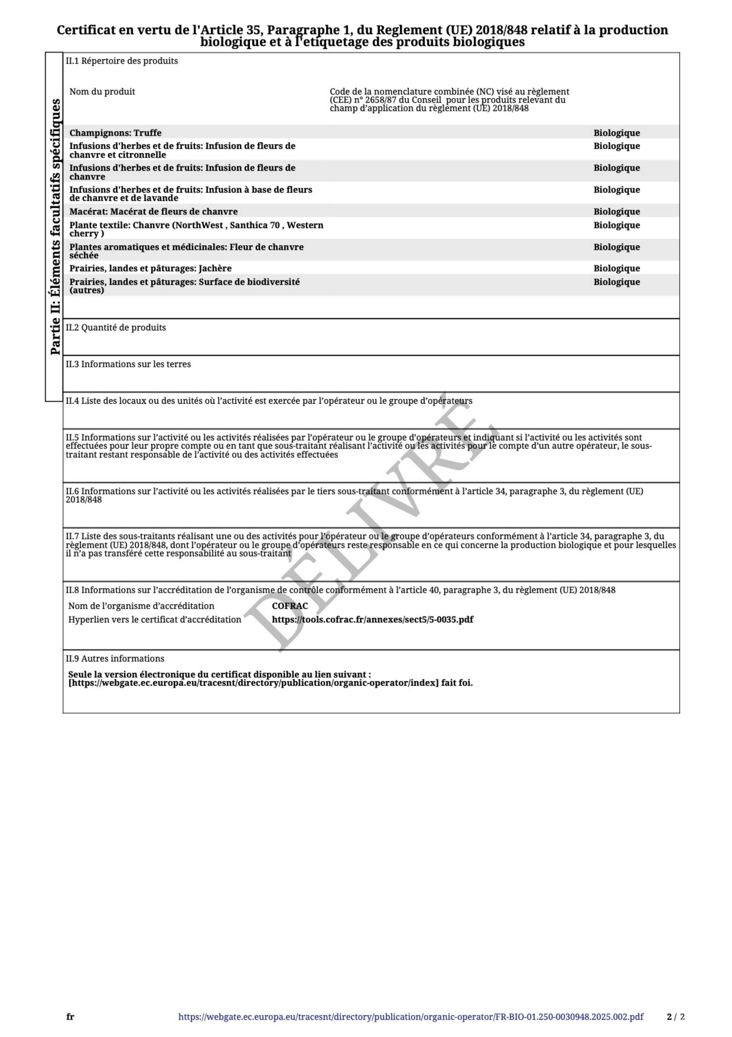 Culture de chanvre certifiée Bio par Ecocert en Provence dans le Vaucluse.