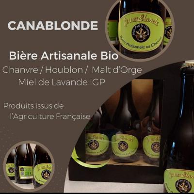 Découvrez notre bière artisanale CanaBlonde réalisée à base de chanvre. C'est une bière Artisanale Bio au Chanvre. Chanvre/Houblon/malt d'Orge & Miel de Lavande IGP